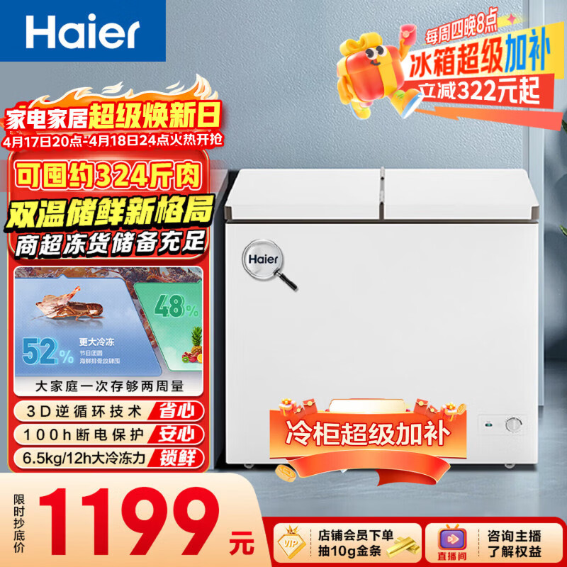 海尔216升双温冰柜到手价842元