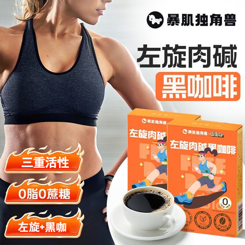 暴肌独角兽左旋肉碱黑咖啡限时29.9元抢30条!每条不到1元,燃脂健身必备