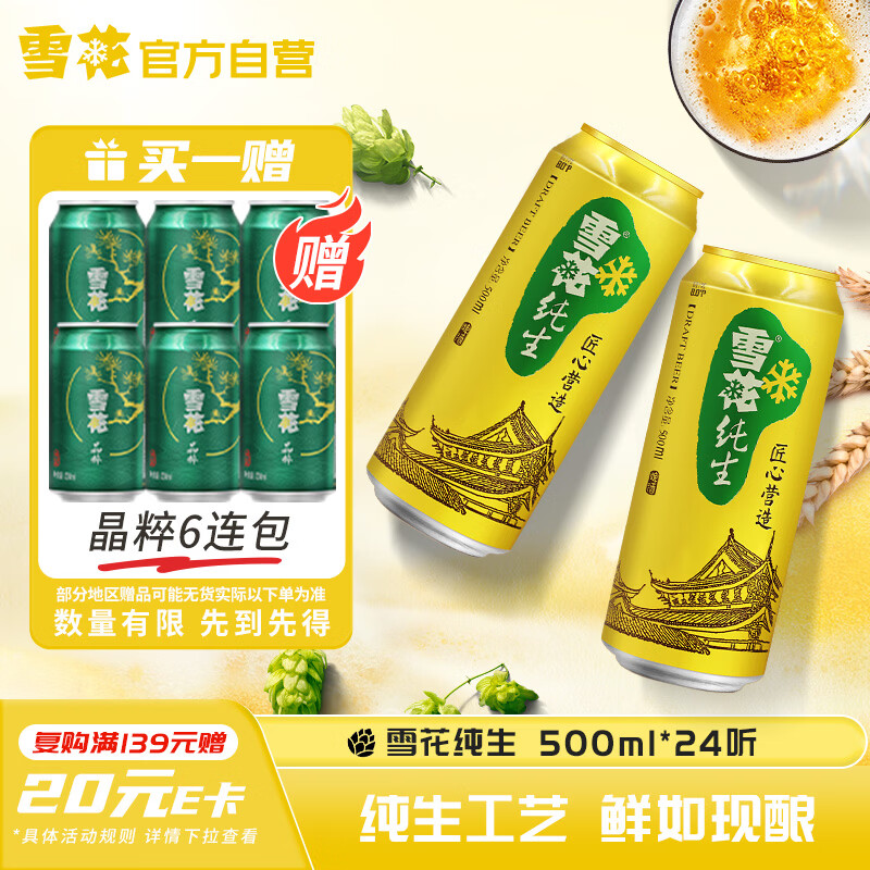 雪花啤酒纯生500ml*24罐 首购Plus到手101.5元