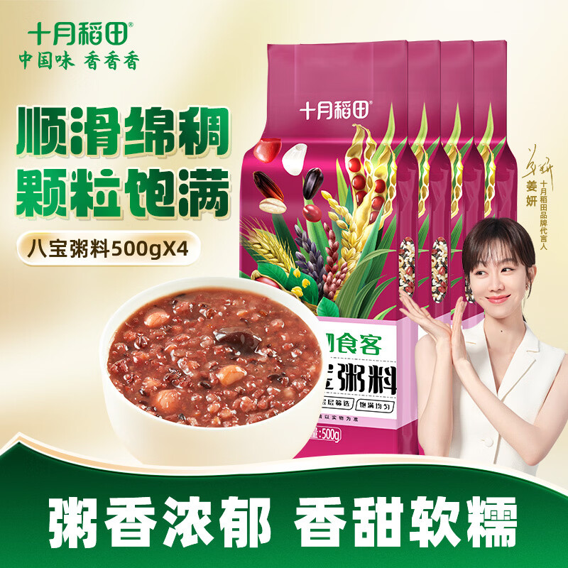 【限时抢购】十月稻田八宝粥料500g*4袋仅19.9元!粥香浓郁营养早餐必备
