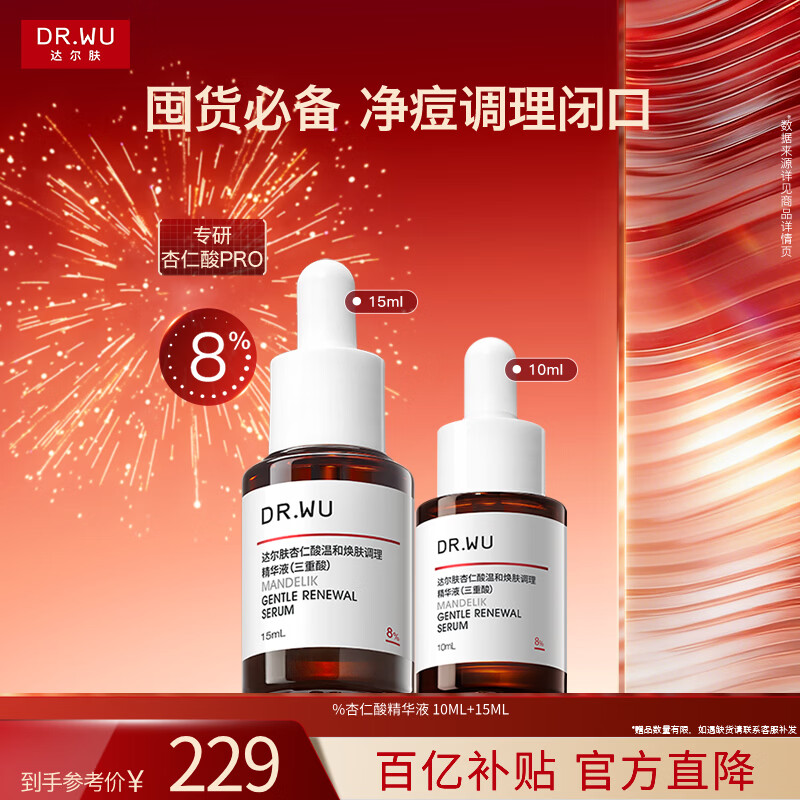 油敏肌速抢!达尔肤8%杏仁酸精华25ml仅144元到手,屏障修复必备