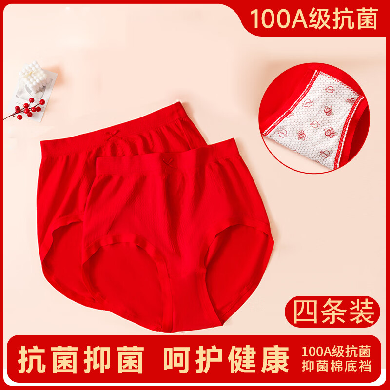 ¥19.9 宜而爽马年红色本命年内裤女抗菌无刺激舒适无痕轻松贴肤不紧绷拉伸回弹 【四条】大红色中高腰三角裤 均码 建议90-150斤 49.9