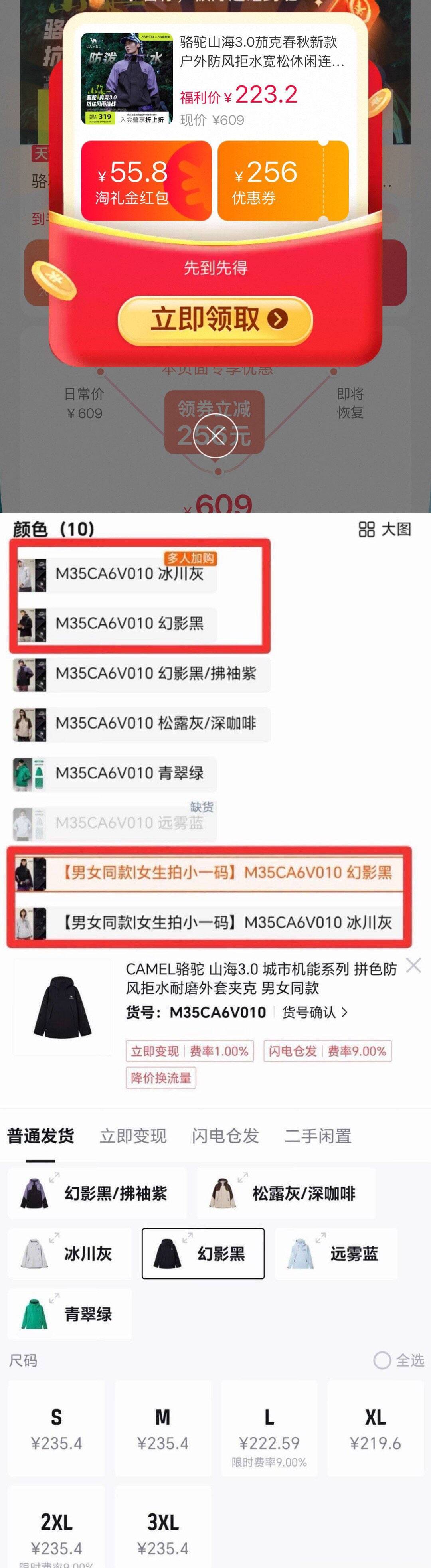 骆驼山海夹克3.0双倍礼金狂欢!券后价仅179元,88VIP专享立减速抢!