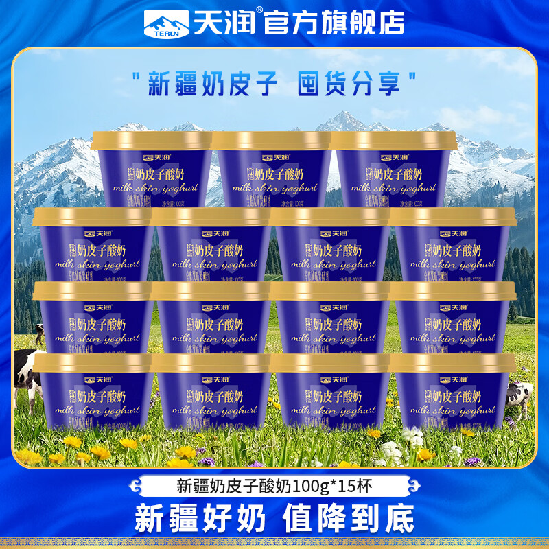 天润新疆奶皮子酸奶15盒装,plus会员到手仅53.01元