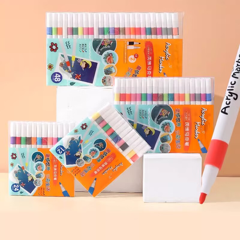 ¥9.99 简菲儿童丙烯马克笔水彩笔可水洗不透色可叠色48色小学生美术专用幼儿园画美术丙烯颜料笔彩色画笔 24色 17.99