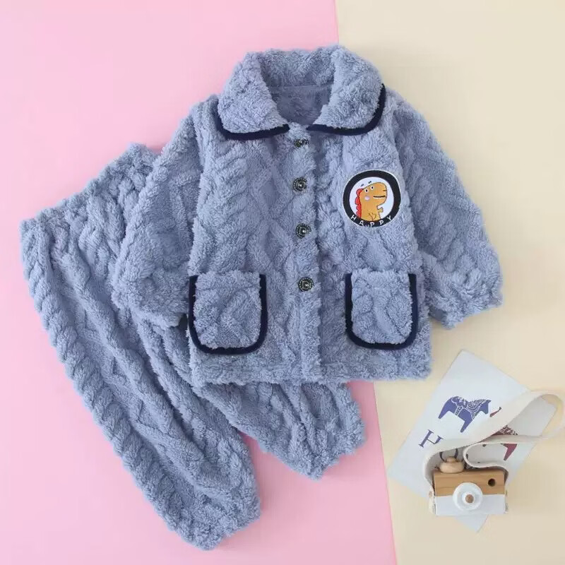 ¥12.9 木木屋(mumuwu)【M】儿童法兰绒睡衣秋冬季男童女童加绒加厚宝宝小童珊瑚绒 浅蓝,深蓝加厚绒睡衣套装 80码【建议70-85cm】 49.9