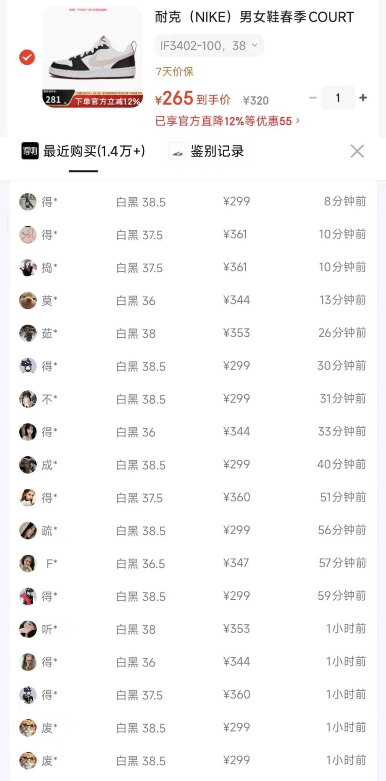 耐克Court白黑运动鞋仅265元到手!比得物省88元