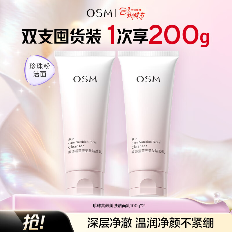 欧诗漫营养美肤洗面奶9.9元/支!19.8元得100g*2支装超值抢购