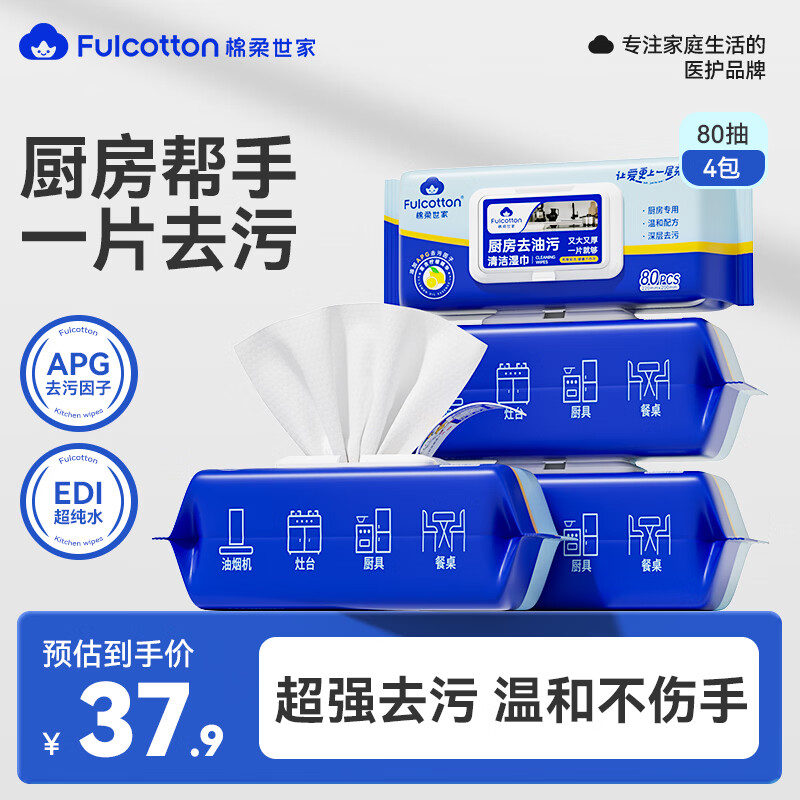 棉柔世家厨房清洁湿巾4包装,折后仅19.9元