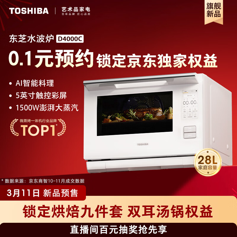 东芝水波炉D4000C升级款AI石窑烤新品预约开启!69元换购斐珞尔露娜洁面仪