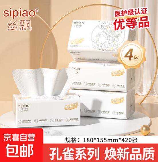 丝飘医护级抽纸5层420张*4包 券后2.99元!可拍3单限时抢购