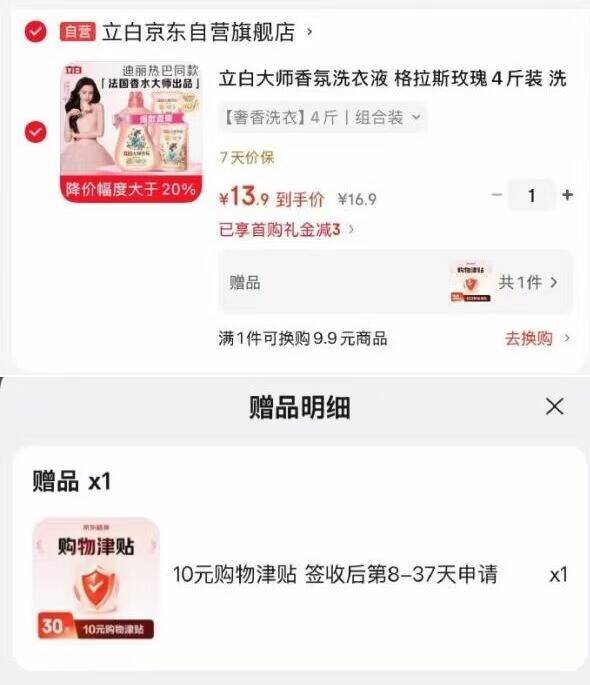 立白大师香氛洗衣液4斤装3件仅13.9元!赠10元购物津贴