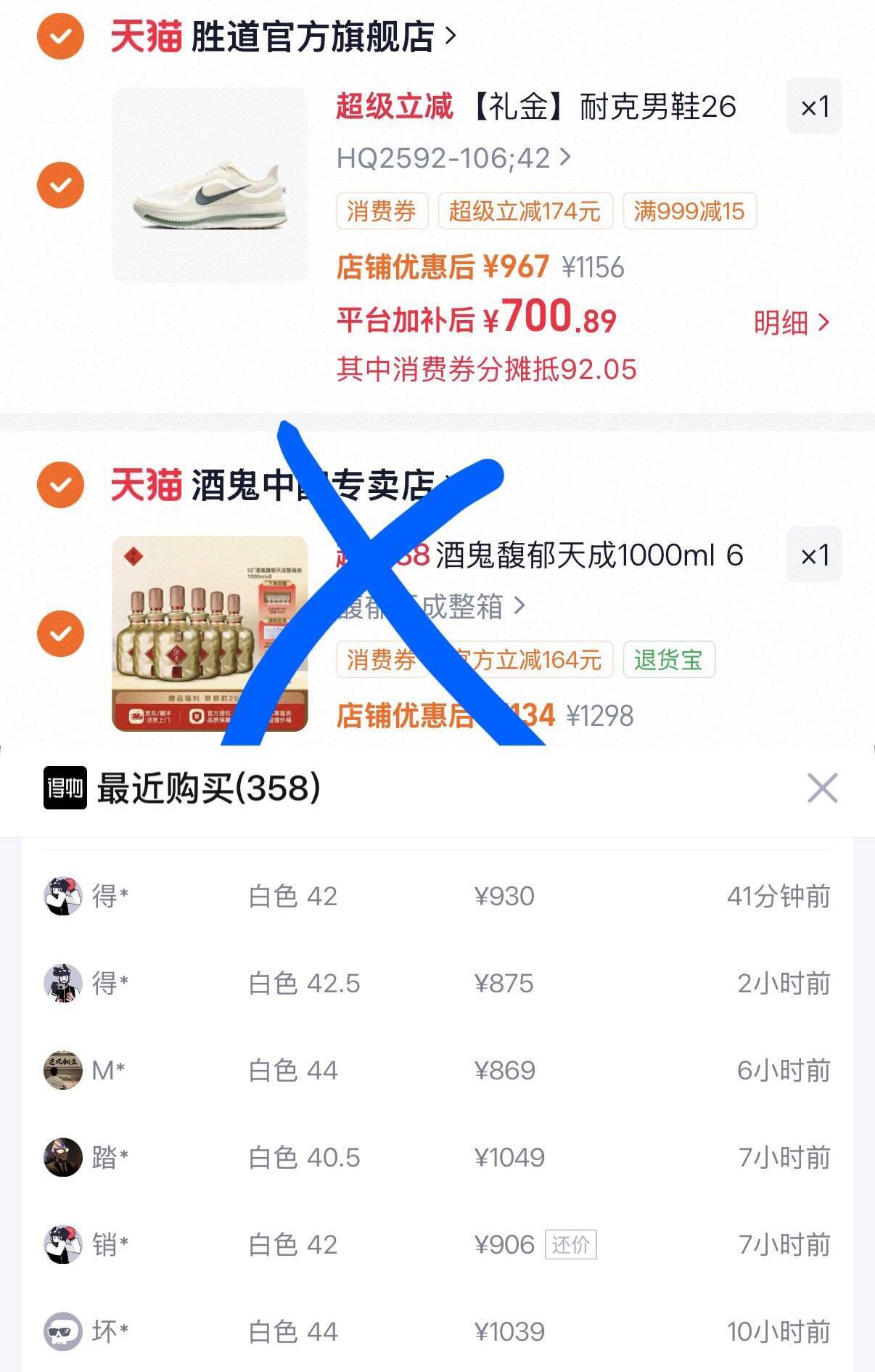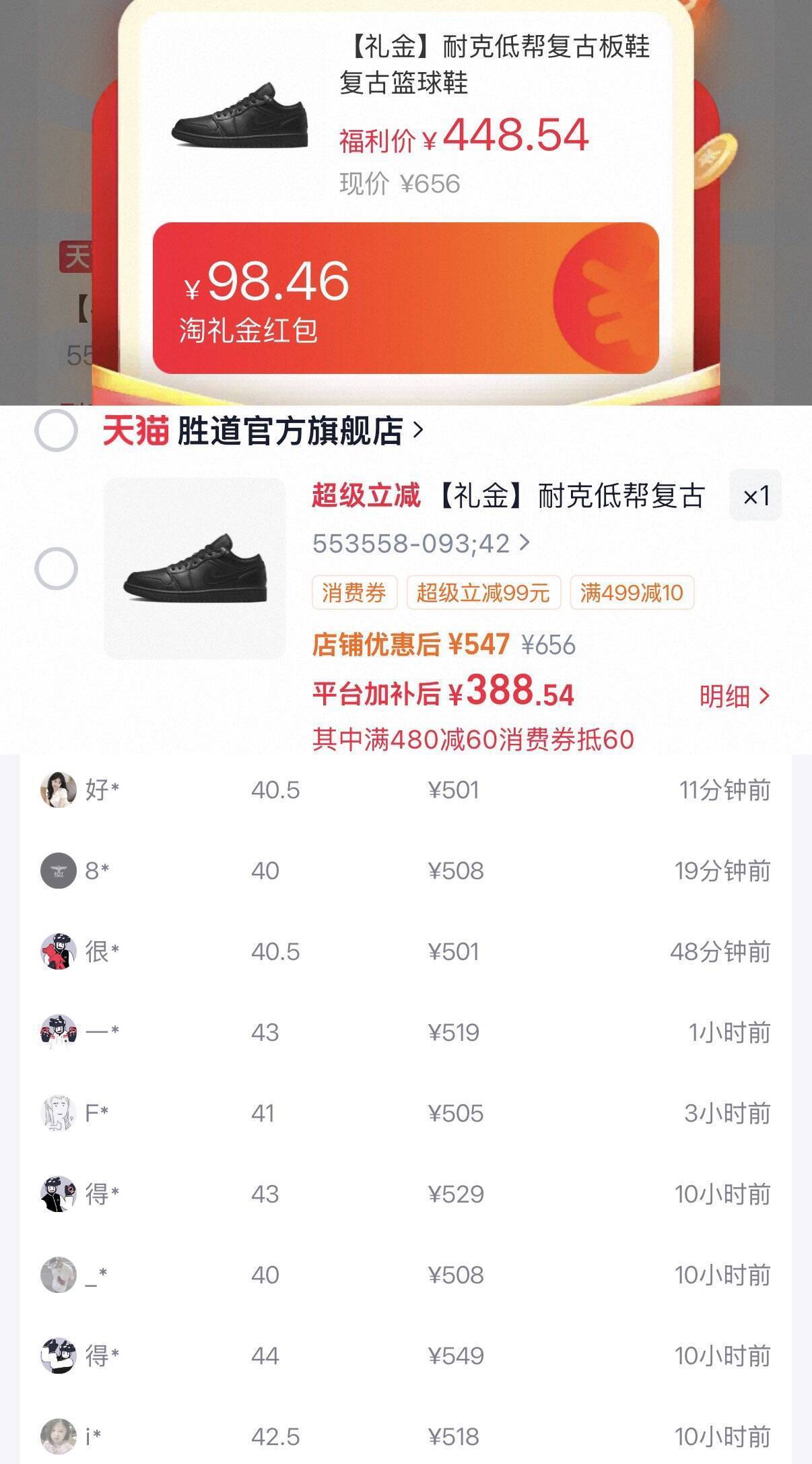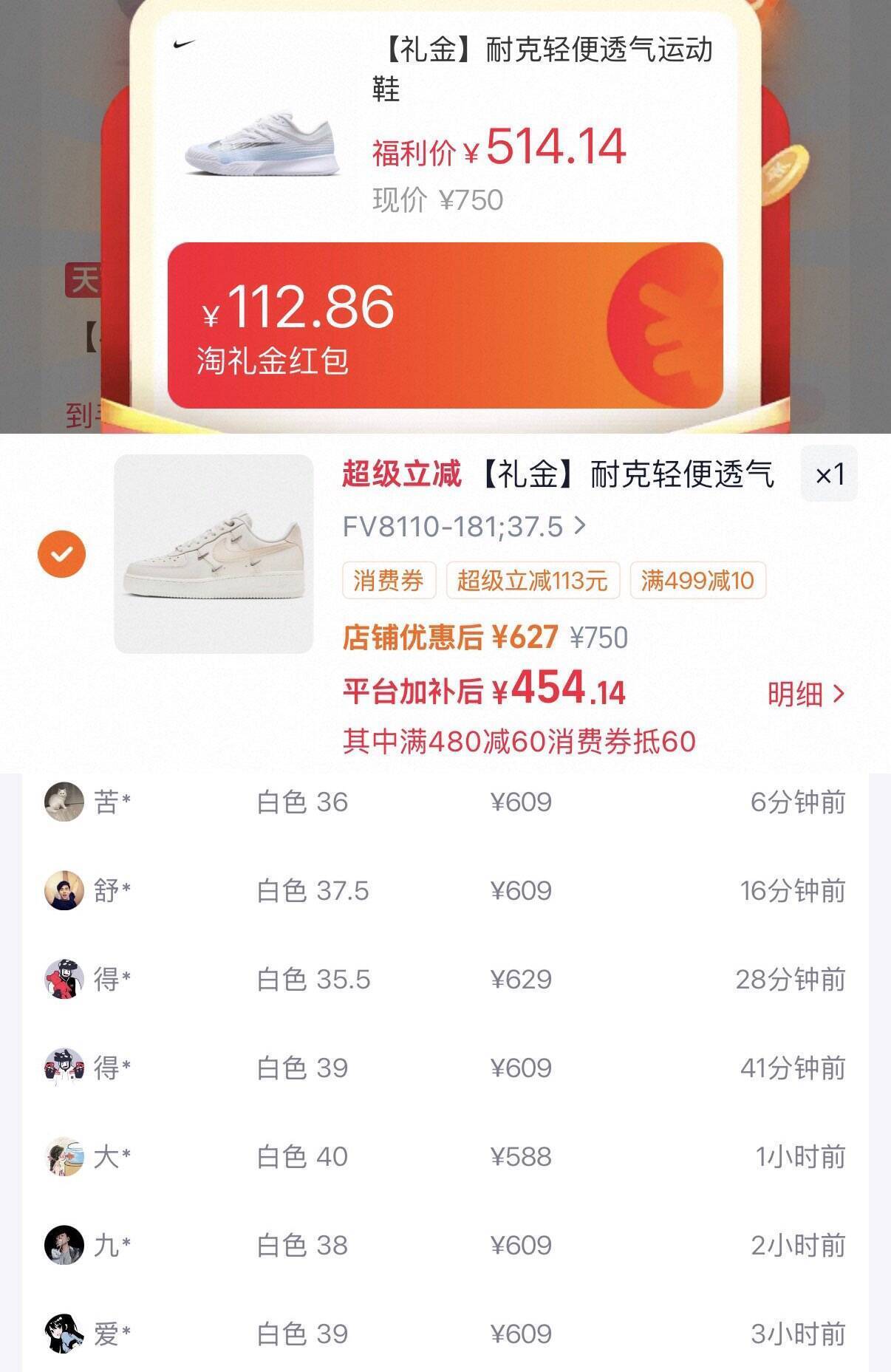 AF1四钩女款叠加消费券仅需454元,得物价609元