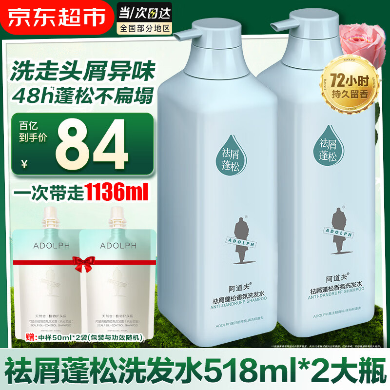 阿道夫祛屑香氛洗发水518ml*2瓶 到手59元