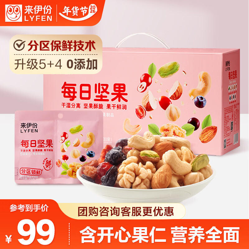 来伊份每日坚果锁鲜装750g/30袋,贵州首单仅15.9元!