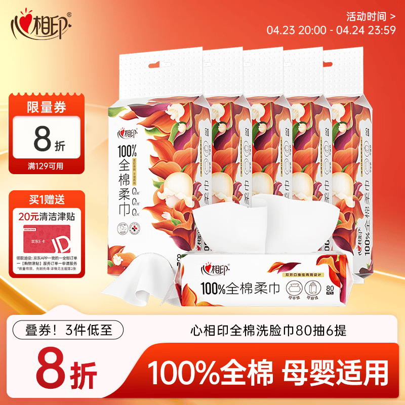 心相印洗脸巾+洁柔手帕纸组合:叠加黑五券与津贴,到手价低至5.52元