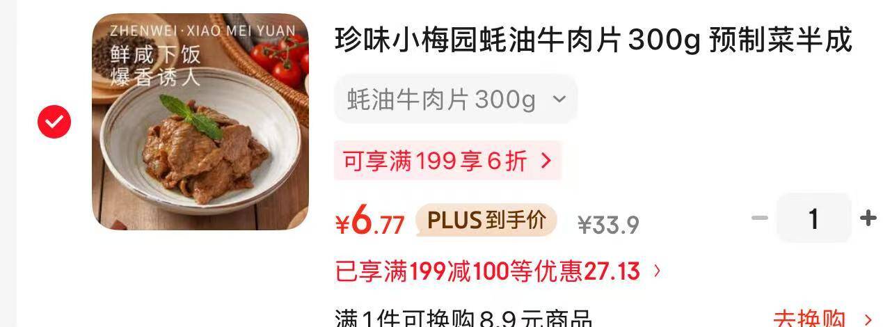 珍味小梅园蚝油牛肉片300g到手价6.77元