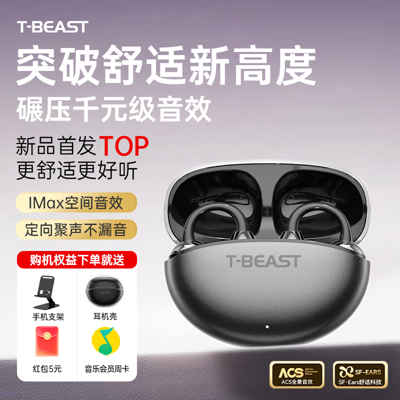 ¥79 拾光兽T-BEAST Z20 开放式蓝牙耳机骨传导概念无线运动跑步长续航通话降噪【开放不漏音丨久戴无痛感】 【星曜黑】Ai实时翻译+舒服佩戴 169