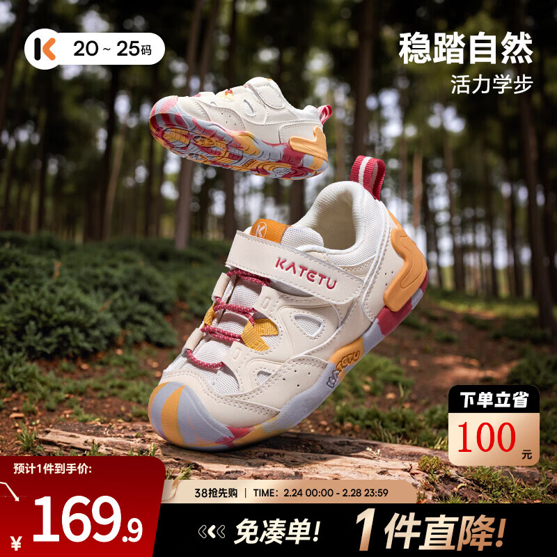 ¥239.9 卡特兔宝宝学步鞋春季小k盾机能鞋1-3岁户外童鞋软底防滑婴幼儿童鞋 米白黄 22 内长约14.0cm脚长约13.1-13.7 269.9