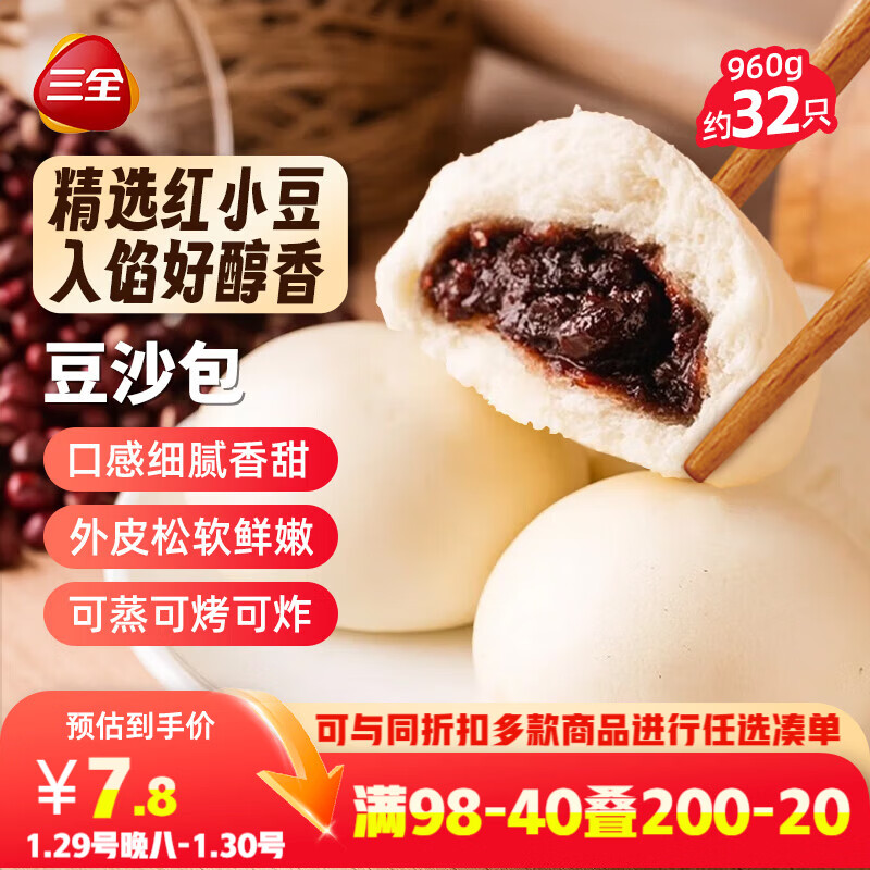 三全豆沙包奶黄包9.9元/件!任选4件仅39.6元,早餐速食爆款抢鲜