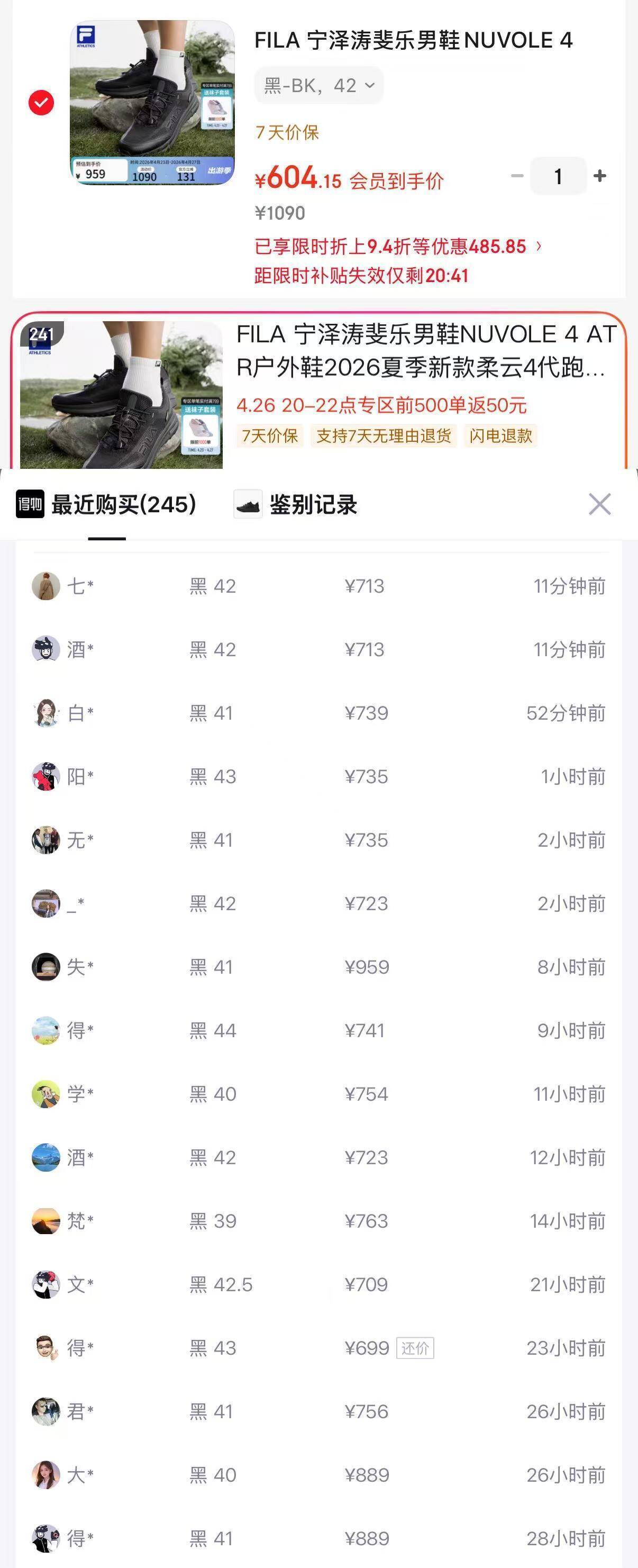 斐乐宁泽涛柔云4ATR运动鞋到手555元