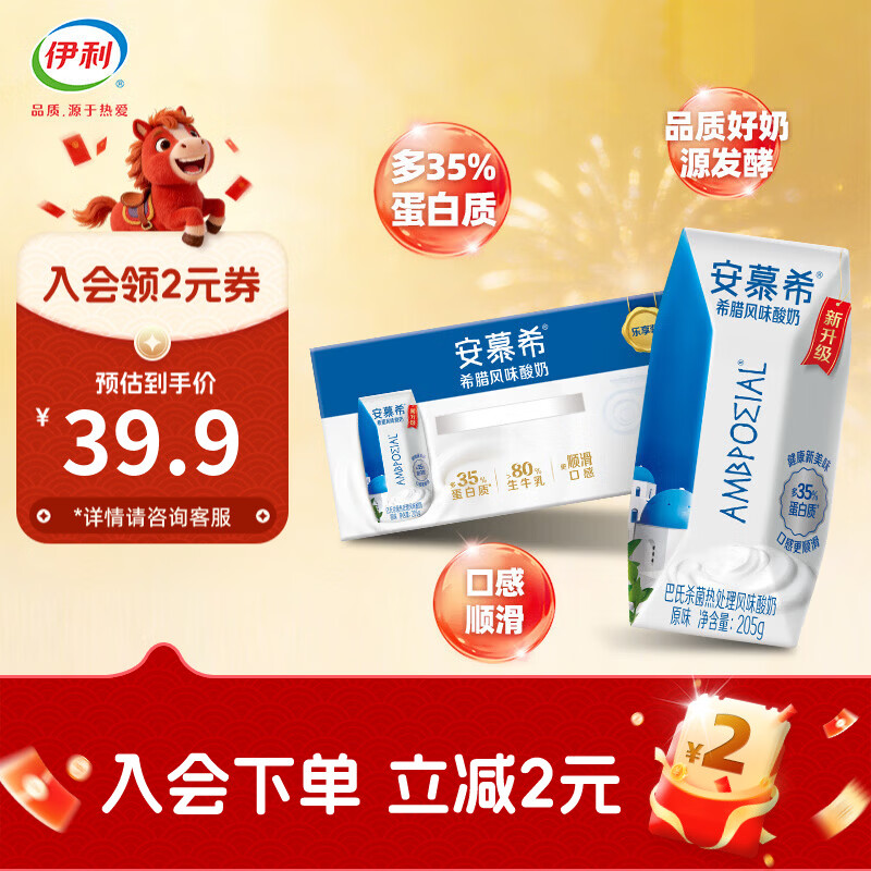 年货特惠!安慕希希腊风味酸奶原味205g*10盒装仅30.7元/箱