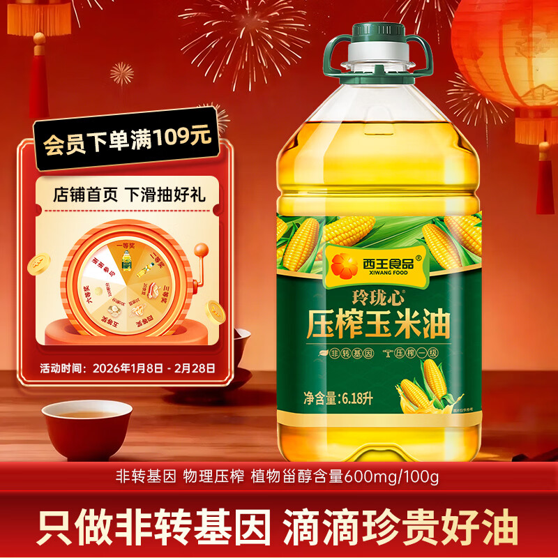 【年货特惠】西王玲珑心玉米油6.18L仅76.9元!非转基因物理压榨,健康好油