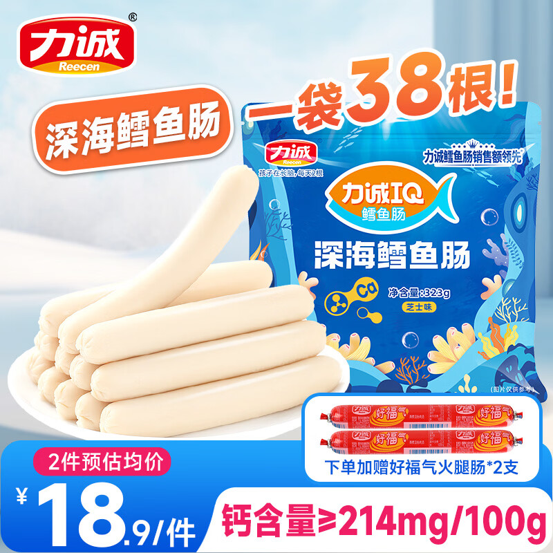 力诚深海鳕鱼肠14元到手!38根+赠2支火腿肠,3毛/根超值购;加钙蟹柳棒19元囤货