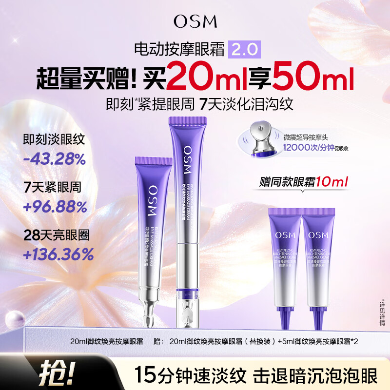 欧诗漫紫眼小马达电动按摩眼霜到手79元