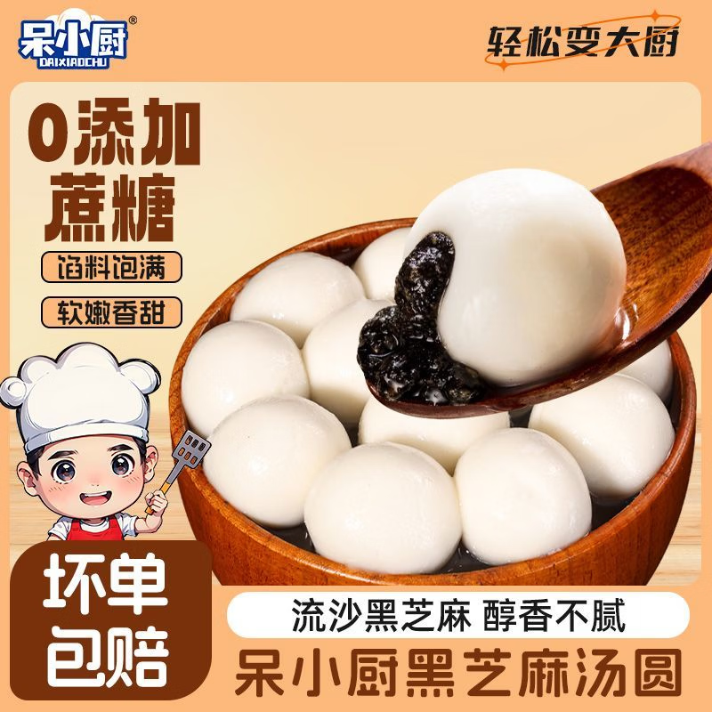 呆小厨黑芝麻汤圆5袋仅15.9元到手!浓香馅料零添加蔗糖速食甜品