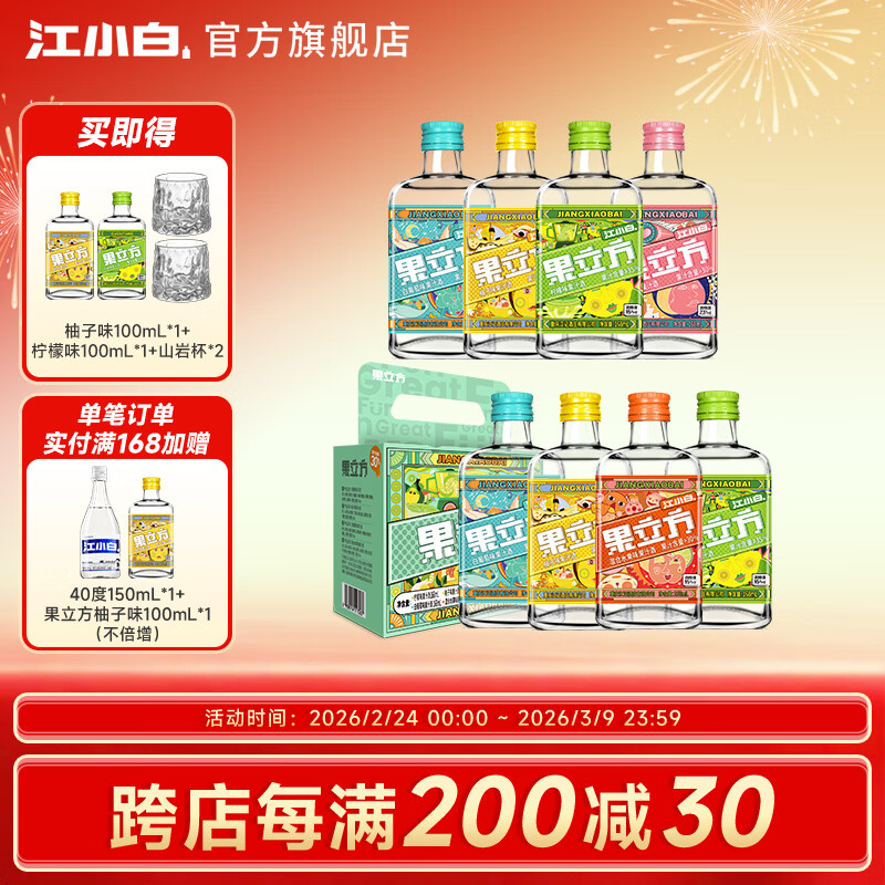 江小白果立方23度果酒168ml*8瓶仅82.8元,赠100ml*2瓶!节日微醺必备