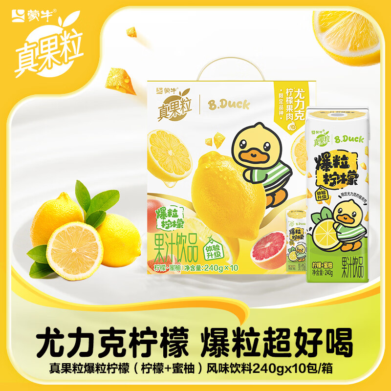 真果粒爆粒柠檬含乳饮料19.9元10盒装!清爽柠檬蜜柚味限时抢购