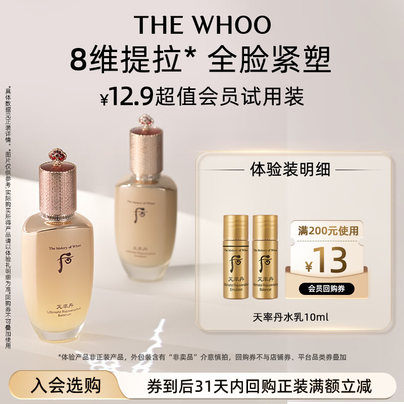 后Whoo天率丹水乳10ml仅需0.1元,会员专享小样试用