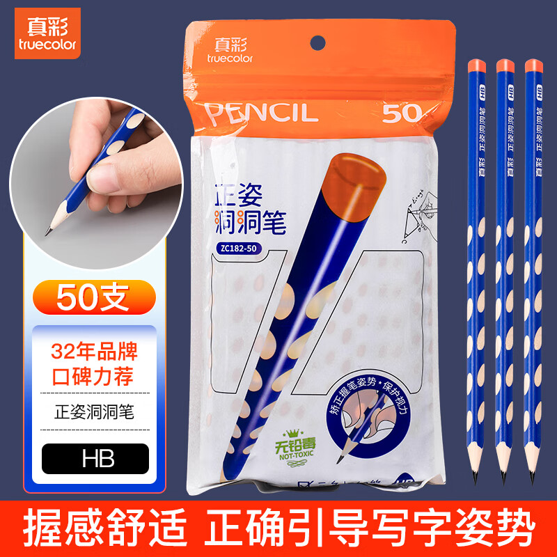 真彩洞洞铅笔50支仅16.5元!小学生练字矫正必备神器