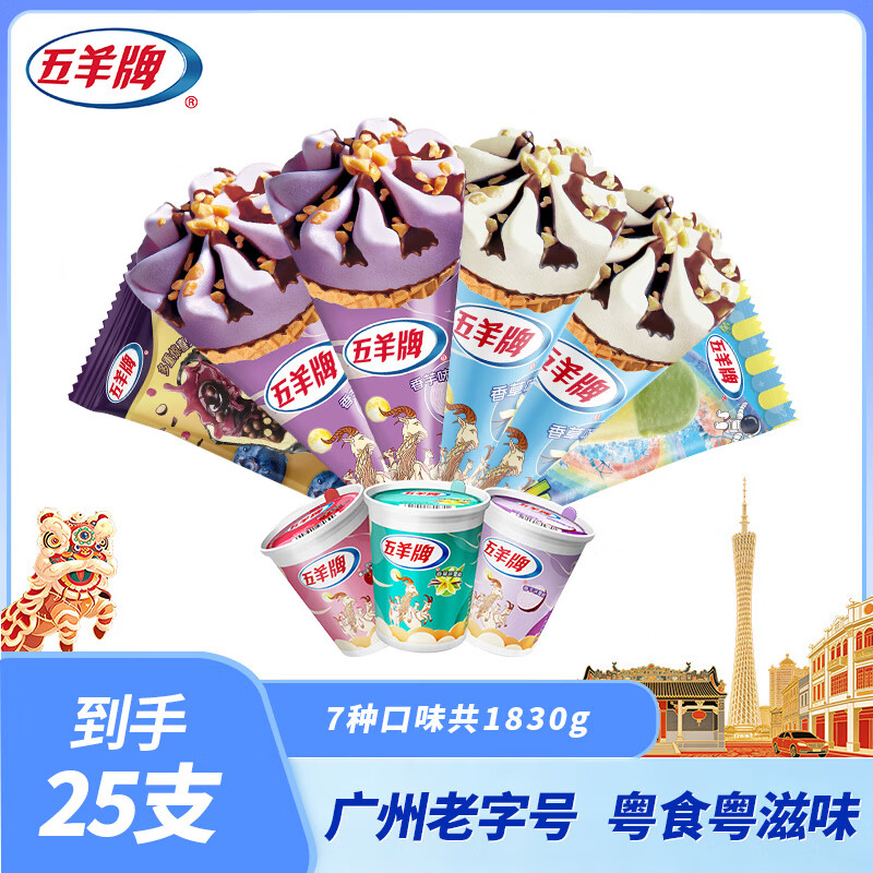 五羊牌脆筒冰淇淋25支组合,凑单后低至65.6元