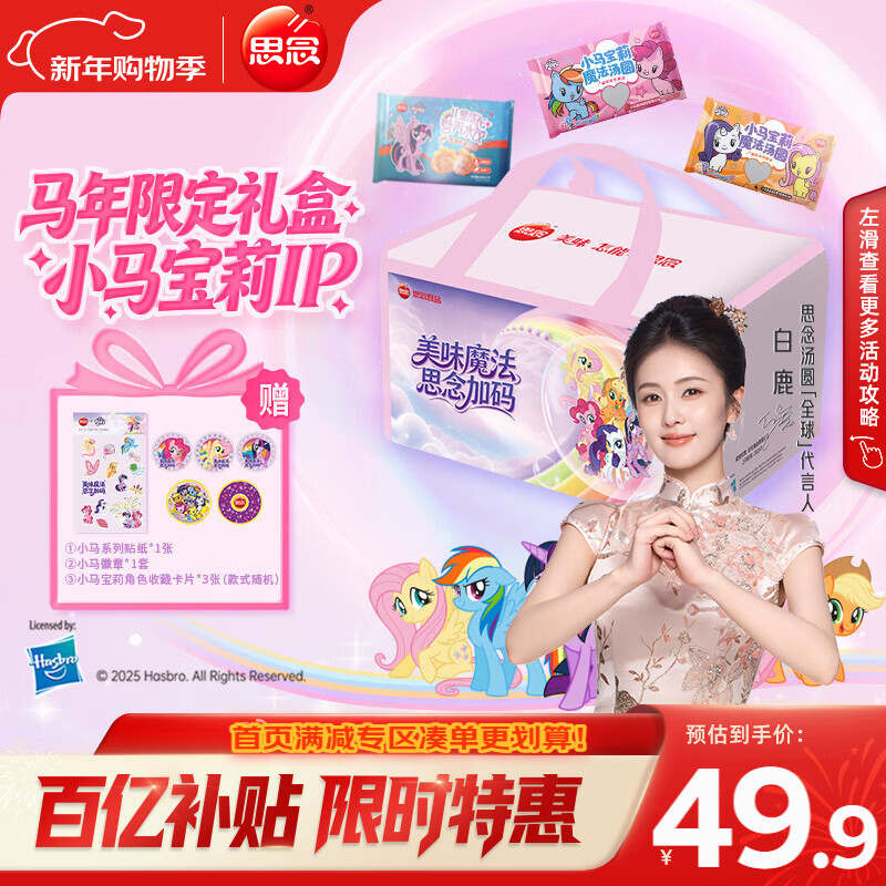 【37.41元抢】思念小马宝莉儿童食品礼袋1.08kg含7袋饺子汤圆早餐装