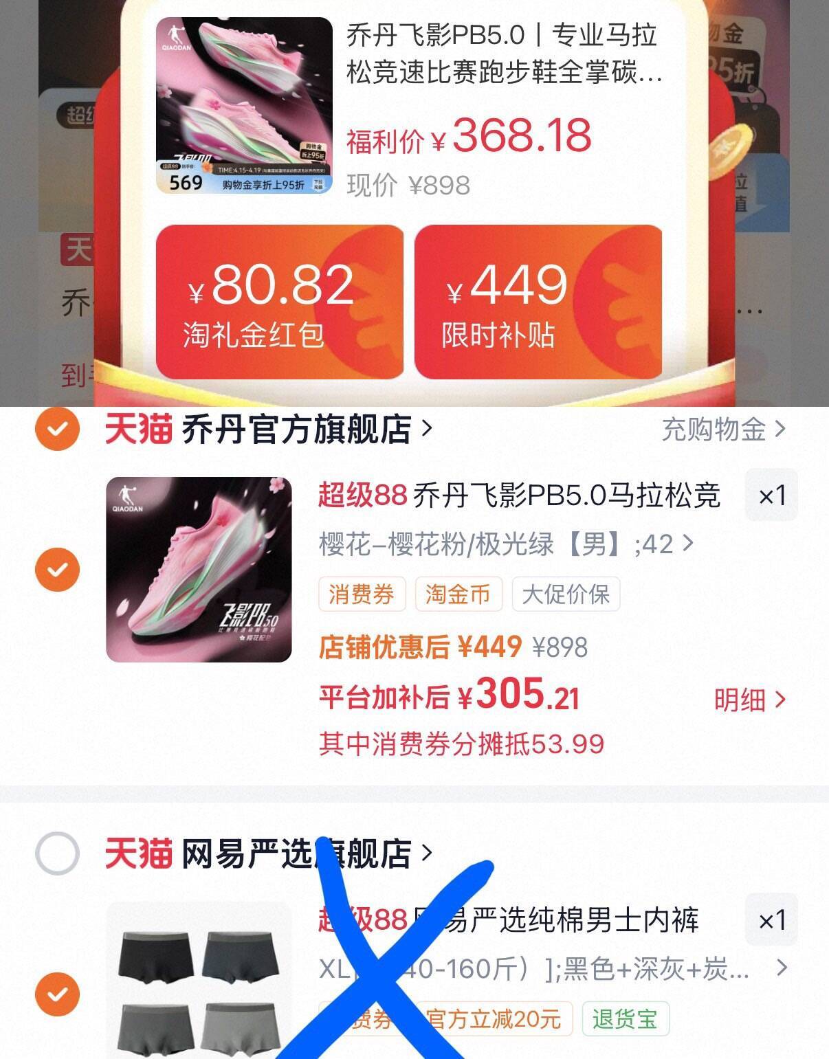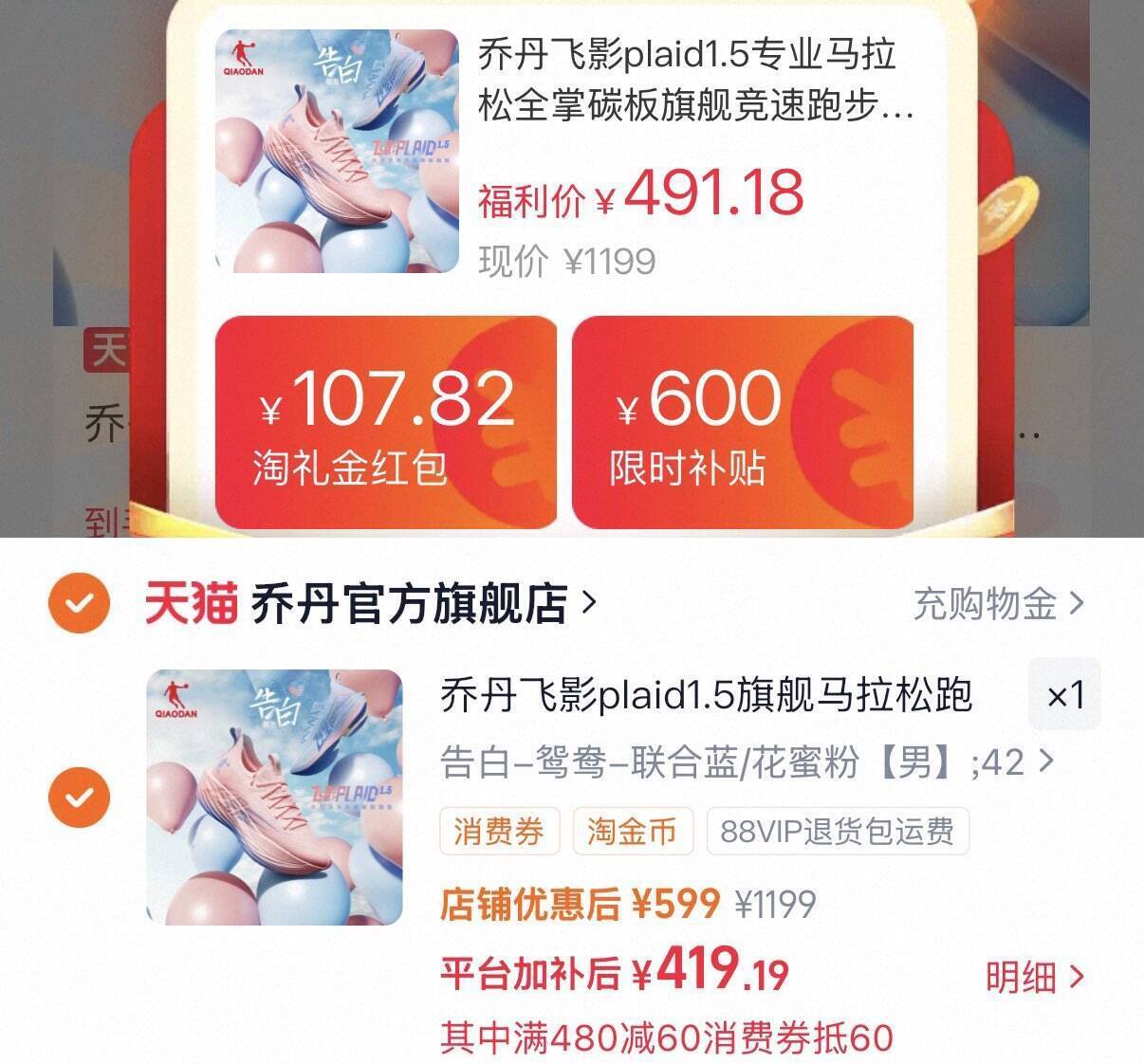 乔丹飞影Plaid1.5跑鞋仅需398元,叠加消费券超值入手