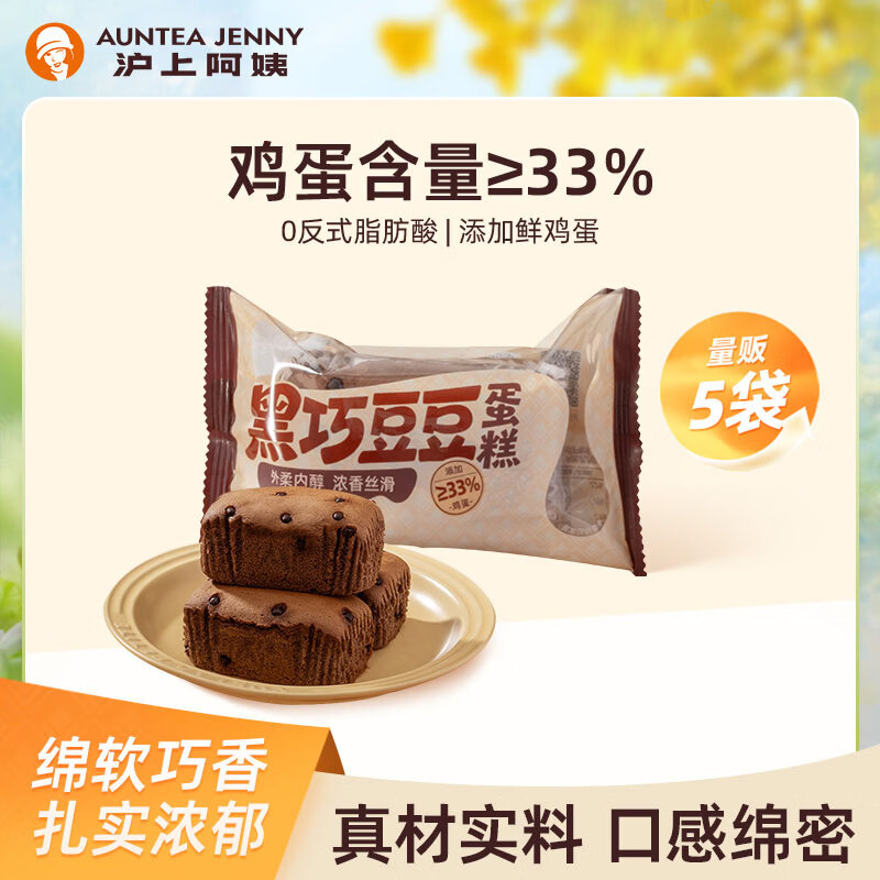 【9.5元抢鲜价】沪上阿姨黑巧豆豆蛋糕5袋装(45g/袋),独立便携早餐零食限时特惠!