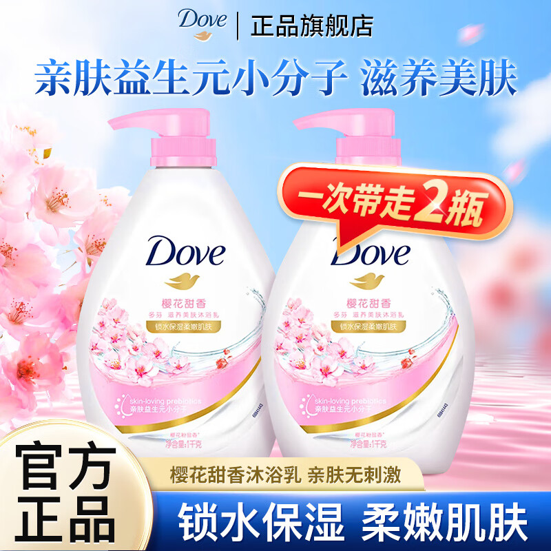 【限时特惠】多芬樱花甜香沐浴乳1kg*2瓶,仅需52.9元!