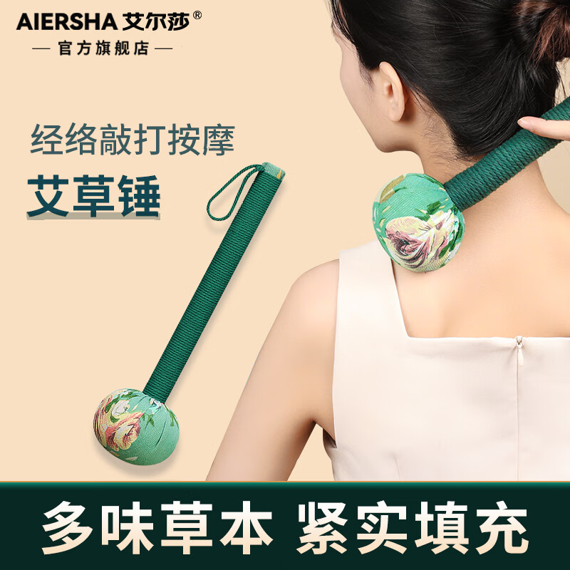 艾尔莎古典翠绿艾草按摩锤26cm仅6.8元!居家养生神器限时抢购