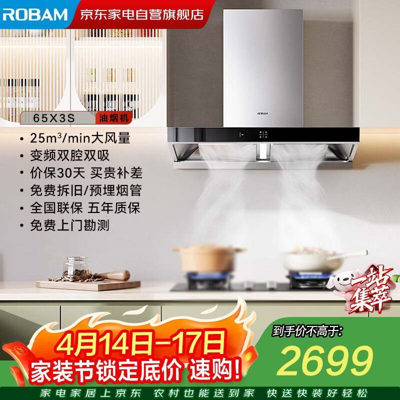 老板欧式变频油烟机65X3S以旧换新低至2130元