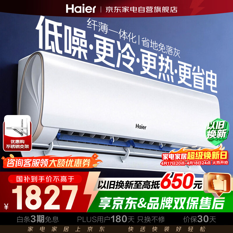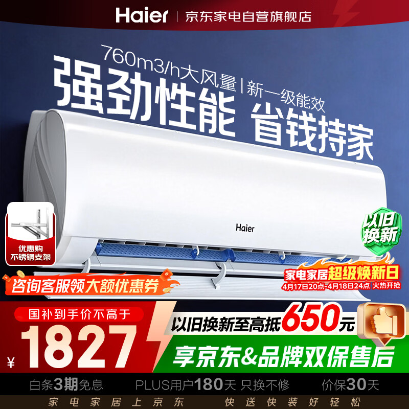 海尔空调1.5匹劲爽优樾新一级能效,到手价仅需2048元