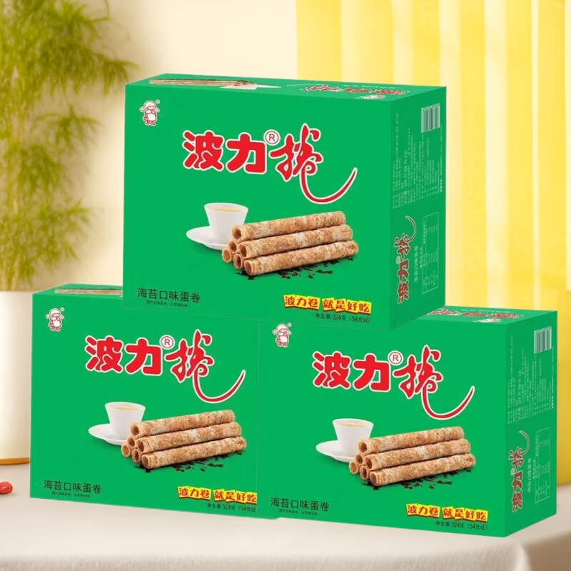 ¥95.5 波力海苔味蛋卷中秋节礼盒铁罐装营养代餐酥脆饼干食品糕点点心热门 324g海苔味*3(共18包) 115.5
