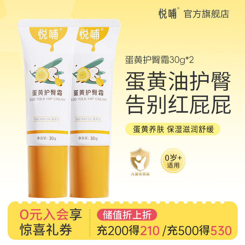 ¥62 悦哺婴儿护臀霜 宝宝蛋黄油护臀膏PP膏屁屁乐膏预防红屁屁新生儿 【商超同款】护臀霜 30g*2支 89