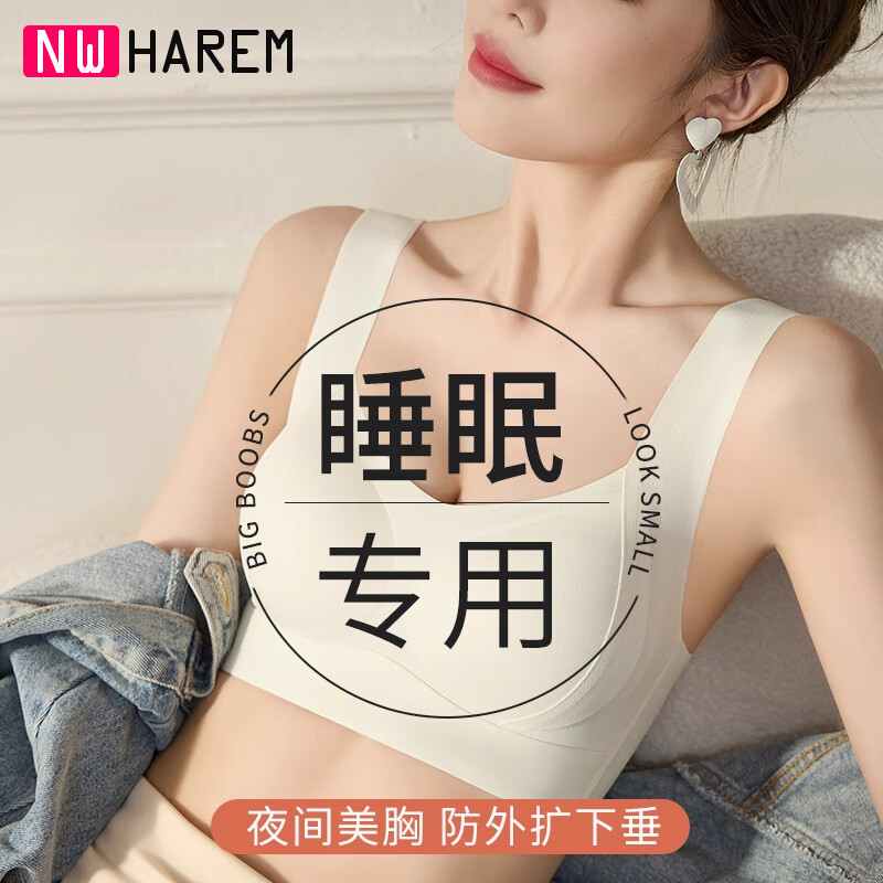 ¥59.9 NW HAREM夜间睡眠专用内衣女调整型矫正胸外扩防下垂睡觉可穿无痕背心文胸 香槟色 M 码【推荐体重95-110斤】 69.9
