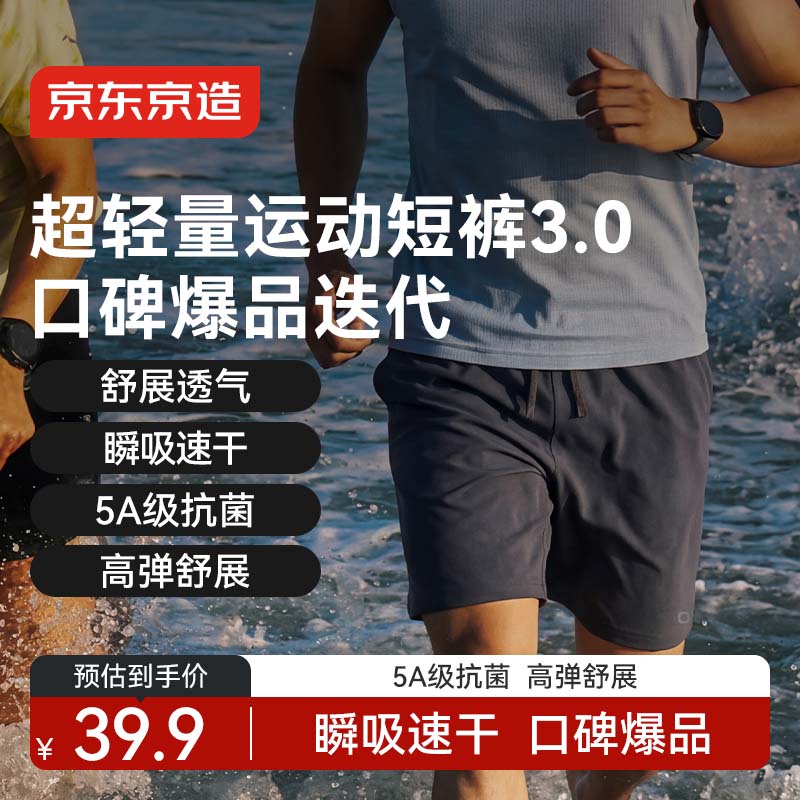 京造男款速干短裤:任选2件仅需29.5元/件