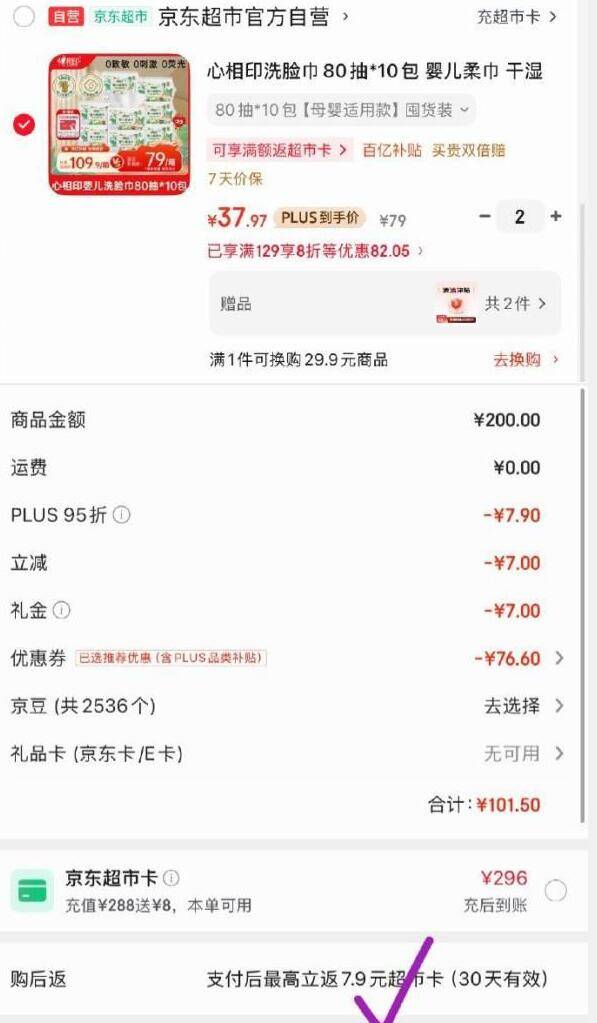 心相印洗脸巾80抽*10包,叠加优惠后单件低至14.02元