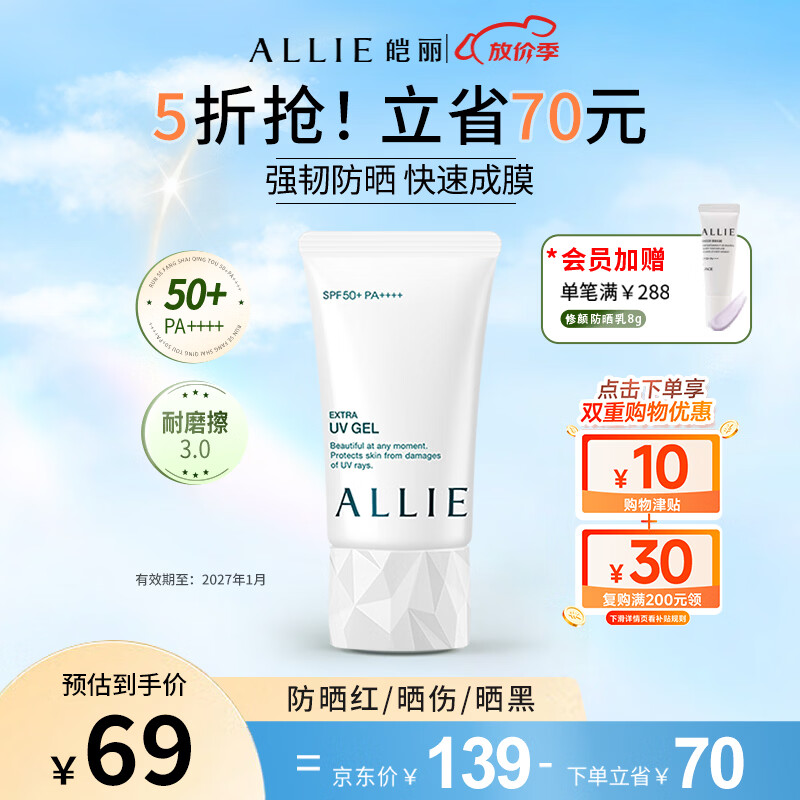 皑丽水润防晒隔离乳到手49元+U
