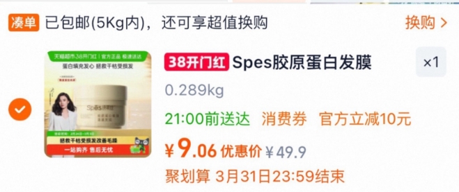 9元包邮!诗裴丝发膜200ml