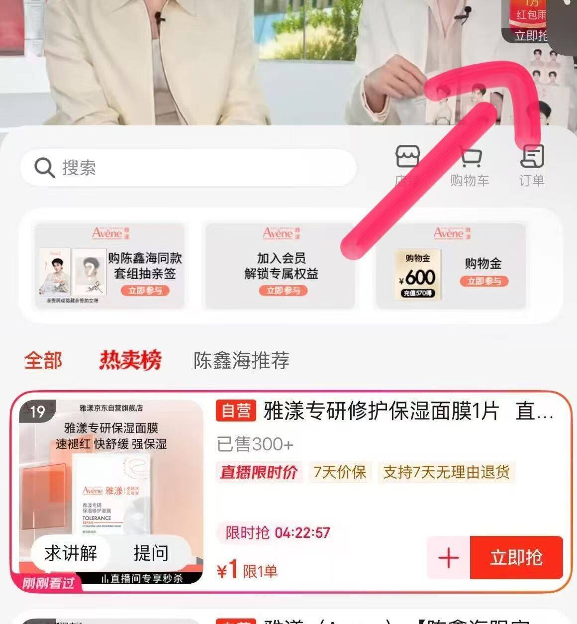 雅漾面膜1片到手价0.01元,直播间领红包雨拍需Plus